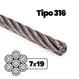El cable de acero 35×7 se compone de 35 torones, cada uno formado por 7 hilos. Es especialmente adecuado para aplicaciones que requieren resistencia a la rotación, ya que su diseño minimiza este efecto. Sin embargo, es importante tener en cuenta que, aunque ofrece esta ventaja, es menos resistente a la abrasión en comparación con el cable de 19×7.