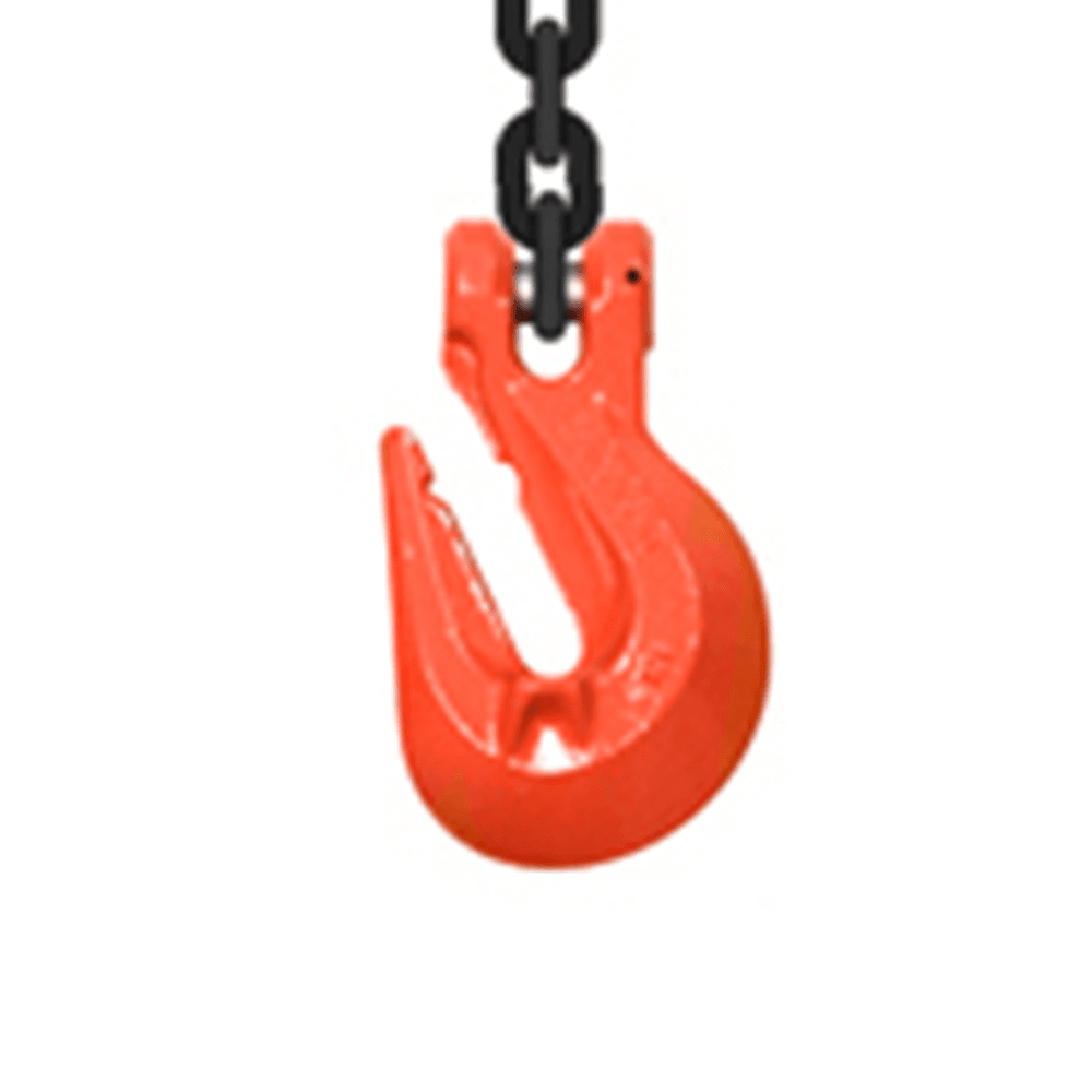 Cada eslinga cuenta con una argolla oval en la parte superior y un gancho de amarre o tipo traba en la parte inferior, ideal para aplicaciones en construcción, minería, transporte y más.